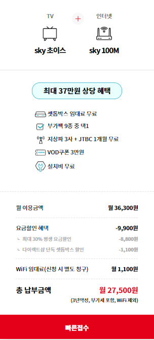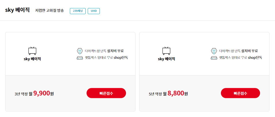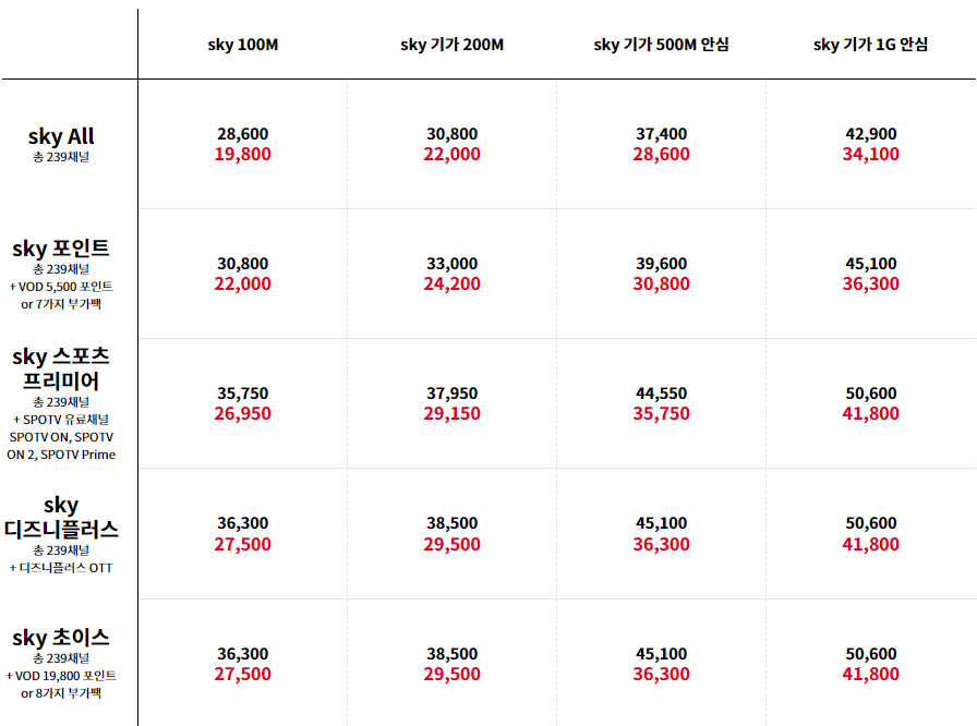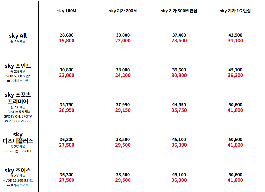 스카이라이프 요금 안내