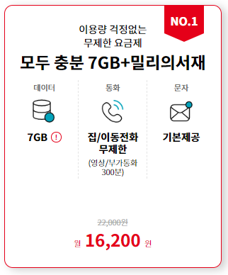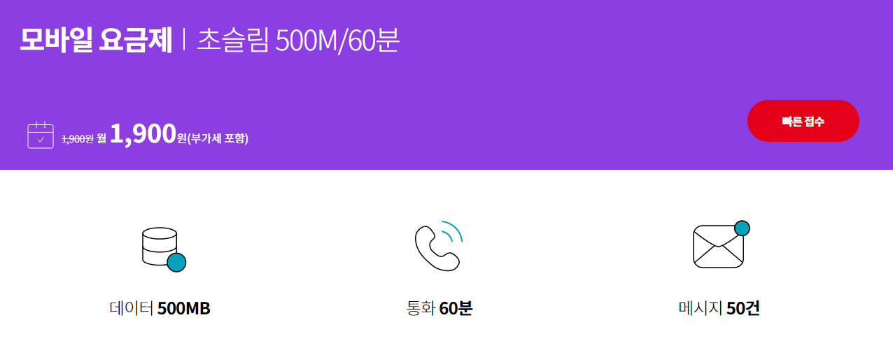 - 2,000원 미만의 저렴한 기본료(VAT포함)에 음성과 데이터 적정량 제공