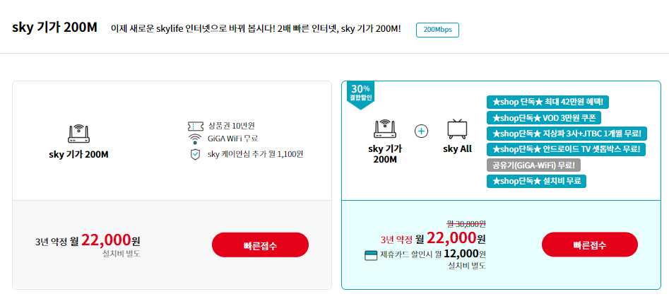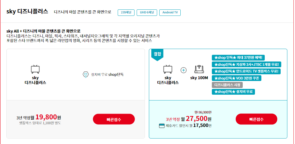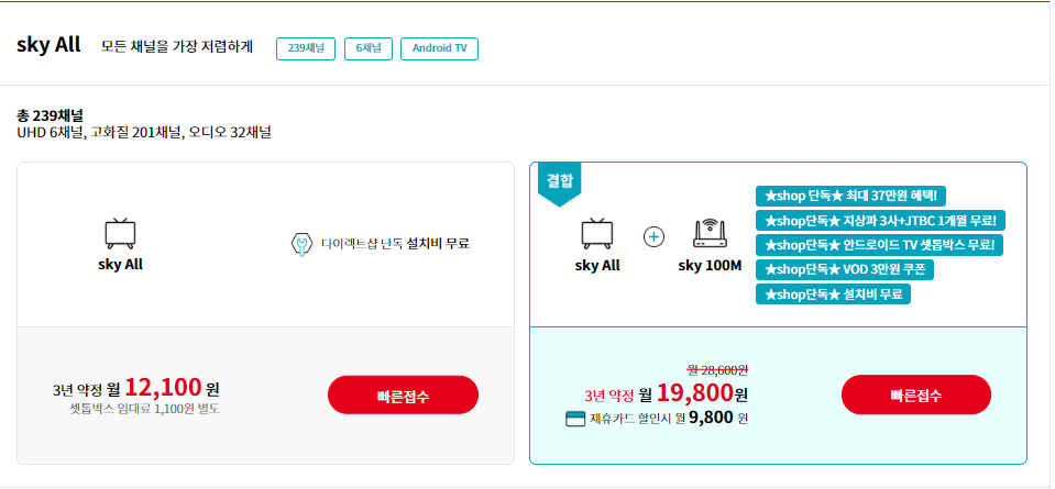 만약 이번 기회에 한 번에 kt 쪽으로 갈아타고 싶으신 분들은 결합 상품을 이용해서 더욱 저렴하게 kt 스카이라이프 서비스를 이용하실 수 있을 듯합니다.