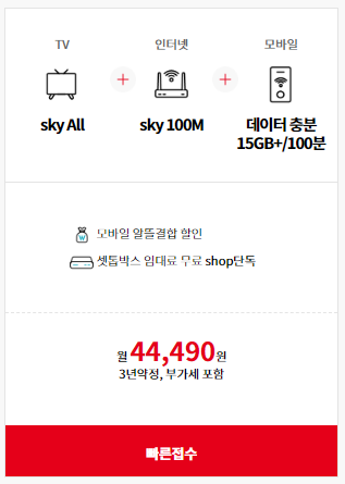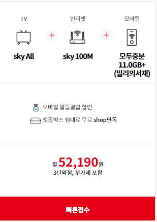 TV+인터넷 2가지를 합친 결합상품은 여러 가지 옵션들이 상당히 붙어있고 할인 또한 많이 되었으니 여러분들은 꼼꼼히 확인하시고 접수하시길 바랍니다.