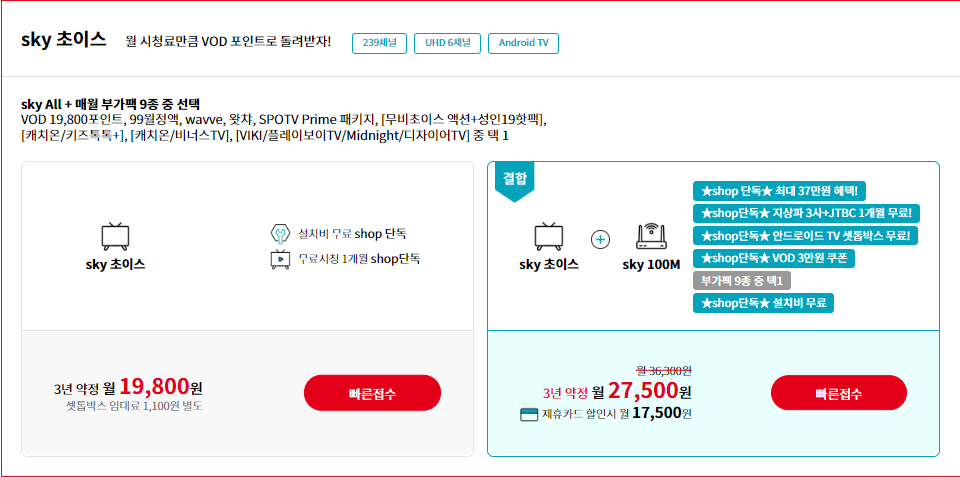 - 스카이초이스 주문하기 1577-3005