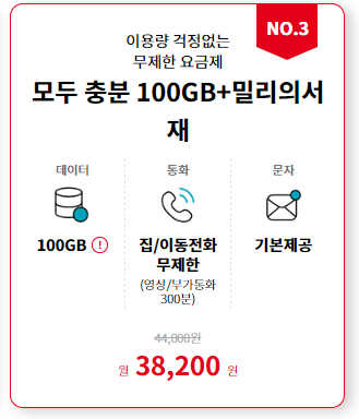 - 망내 외 유무선 통화 기본제공