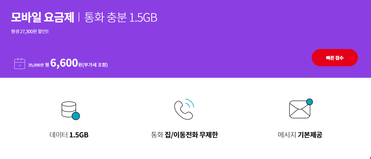 - 데이터는 기본 1.5GB 제공