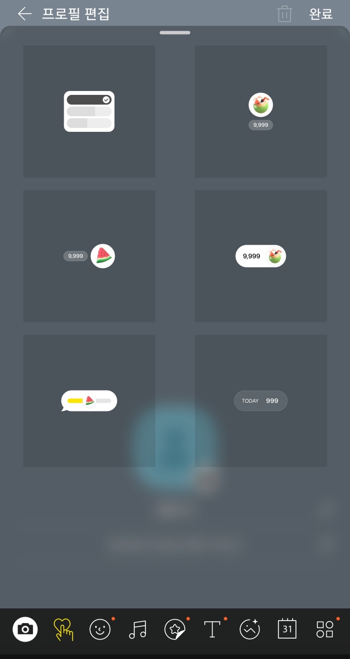 4. 프로필 뮤직 버튼을 생성하여 TODAY 스티커와 동일한 위치에 배치하여 TODAY 스티커를 가릴 수 있습니다.