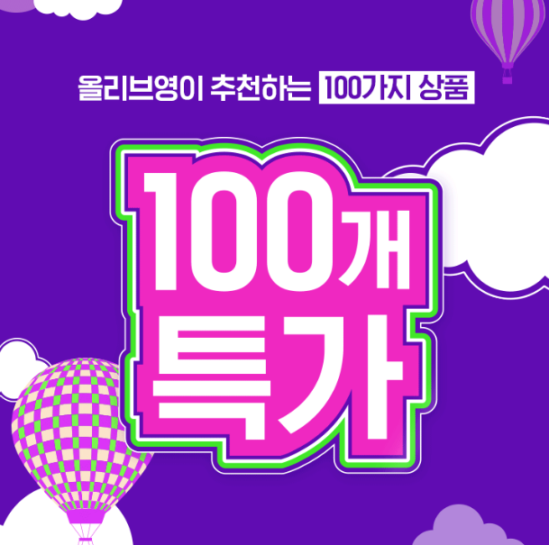 위 사진을 클릭해 홈페이지에 접속하시면 이번 세일 기간에 올리브영이 판매하는 100개의 특가 상품을 보실 수 있습니다. 들어가셔서 무슨 상품들이 세일하는지 알아보시고 방문하시면 더욱 수월한 구매가 가능할 것으로 보입니다. 물론 인터넷으로 사셔도 똑같이 세일된 상태로 구매 가능합니다.